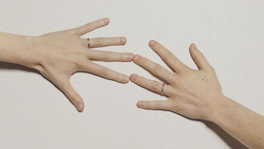 One photograph shows both their hands wearing wedding rings, while another shows the couple leaning in for a kiss.